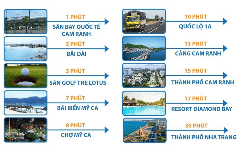 - Đến Trung Tâm Thành Phố Cam Ranh: 15 phút