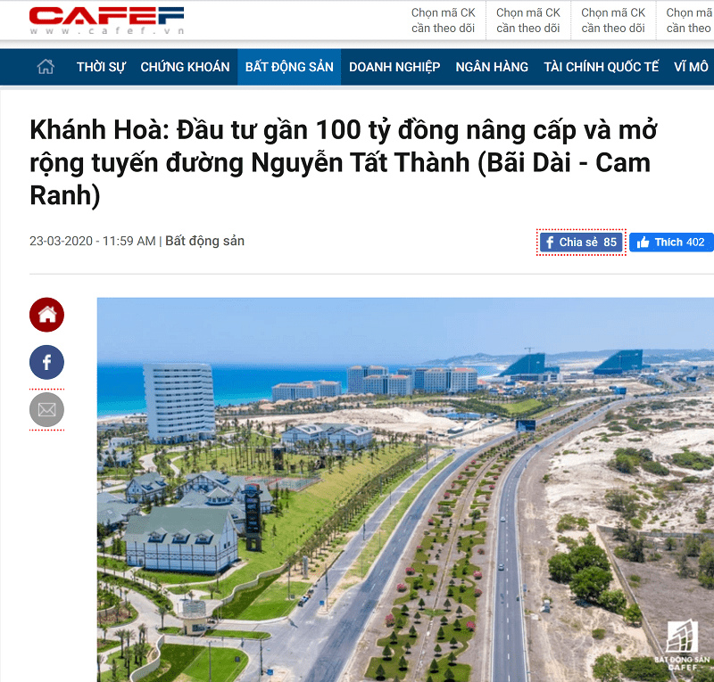 1. Quy hoạch mở rộng đường Nguyễn Tất Thành đoạn từ Sân Bay Quốc Tế Cam Ranh - Cầu Long Hồ (Qua dự án trực diện View Đầm Thủy Triều và sở hữu 1.5km đường Nguyễn Tất Thành có mặt cắt 36m, 4 làn xe) giai đoạn 2021 - 2025, Vốn đầu tư gần 100 tỷ đồng