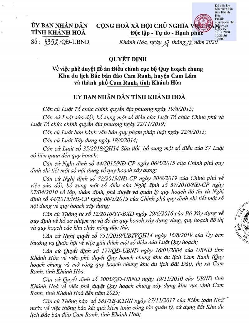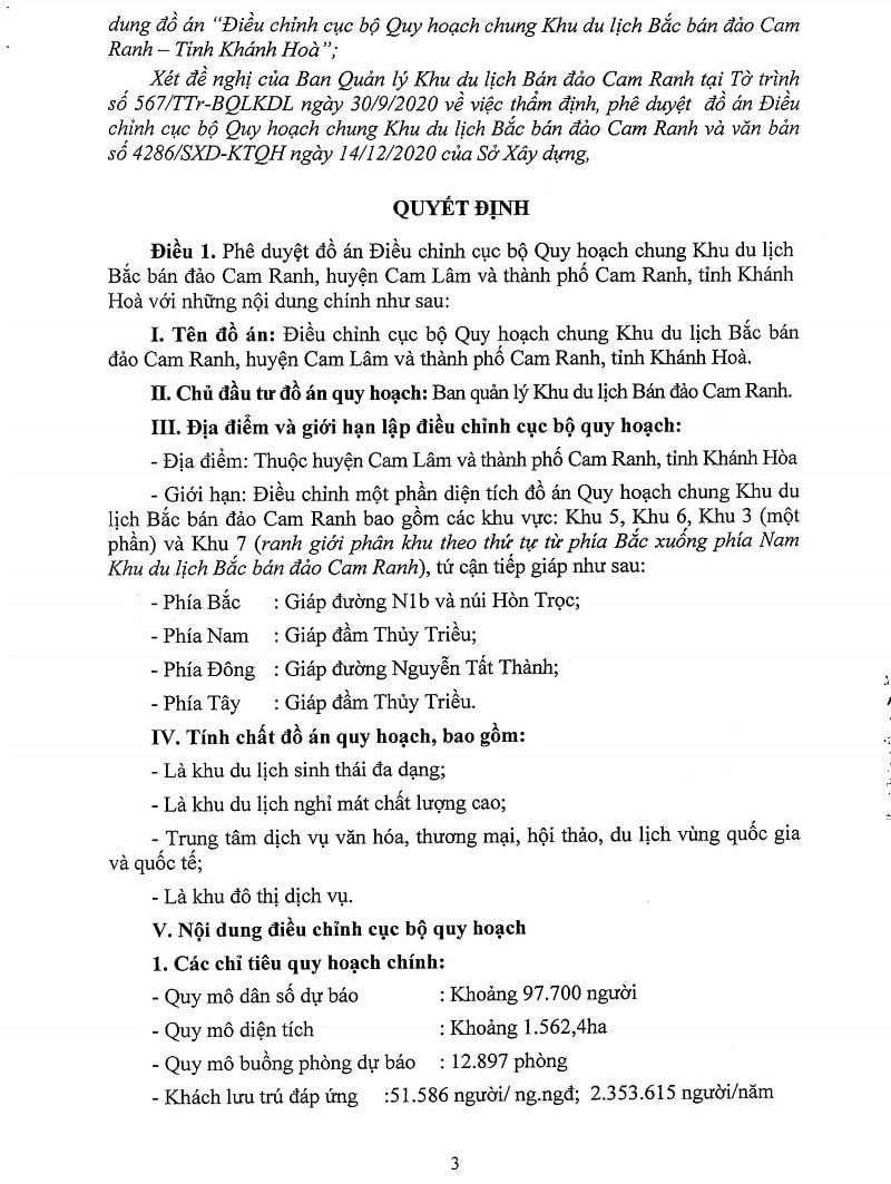 ĐIỀU CHỈNH QUY HOẠCH 1/5000 KDL BẮC BÁN ĐẢO CAM RANH MỚI NHẤT 2021
