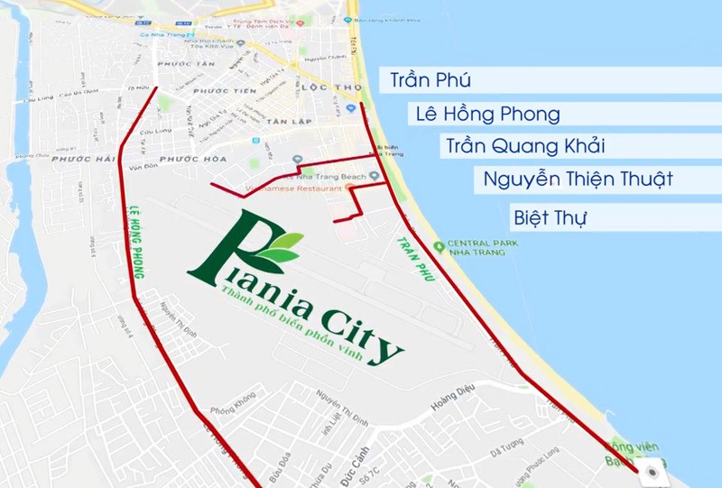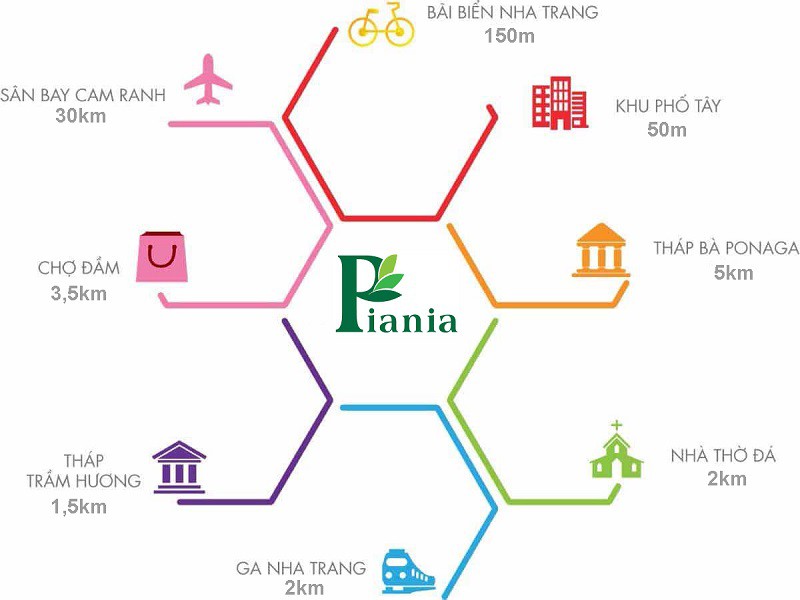- Với vị trí đắc địa Piania City Nha Trang dễ dàng kết nối với trục đường chính Trần Phú, Lê Hồng Phong, Trần Quang Khải, Nguyễn Thiện Thuật, Biệt Thự, Nguyễn Thị Minh Khai, Hoàng Diệu …. Đặc biệt kết nối được với khu trung tâm sầm uất nhất của Nha Trang là khu phố Tây, nơi được du khách rất ưa thích lui tới