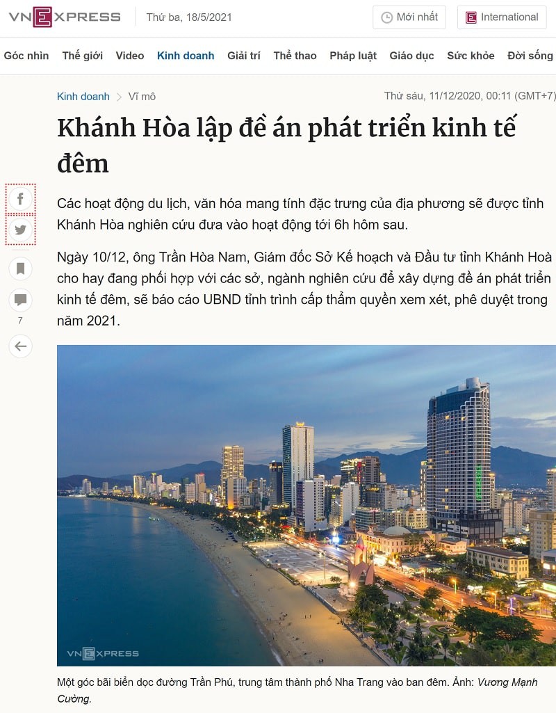 Khánh Hòa hiện có hai thành phố là Nha Trang và Cam Ranh. Tỉnh thường xuyên tổ chức các sự kiện lớn về văn hóa, cách trung tâm không quá xa mà còn dễ dàng tiếp cận các địa điểm văn hóa, du lịch quan trọng. Khu vực nam sông Cái mà cụ thể là giao điểm Trần Phú – Xóm Cồn dần hình thành một khu trung tâm văn hóa – du lịch – thương mại mới, nổi tiếng khắp nơi để phát triển mô hình kinh tế đêm đầu tiên tại Khánh Hoà